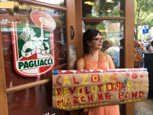 Some time ago, we happened upon a Facebook event for something called “Pizza Crawl 2016.” This event sounded like it was made for us, so Sara and I arranged to spend a late August Saturday afternoon traipsing around Capitol Hill in pursuit of pizza. Let me get one thing straight off the bat: this event was not made for us. Yes, there was pizza. But there was also something called a “revolutionary” marching band, an array of “musical performances,” and just general oddness. Some of the things we saw cannot be unseen, and they can barely be described. After a little over an hour, and only two pizza stops, we made the important decision to carry on the pizza crawl ourselves, eventually visiting six locations, sans parade. Here are the highlights, and lowlights.